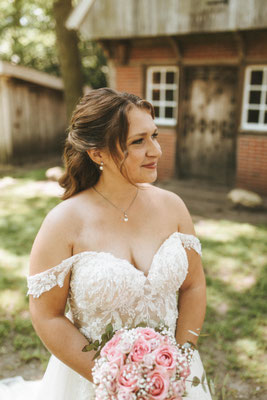 Für dein Brautstyling plane bitte ca. 2 bis 2,5 Stunden ein. So bleibt genügend Zeit für dein Getting Ready, Fotos und das Anziehen deines Kleides.