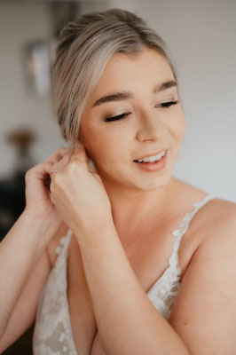 Brautmake-up & Brautfrisur am Hochzeitstag und Probestyling in meinen Räumlichkeiten.