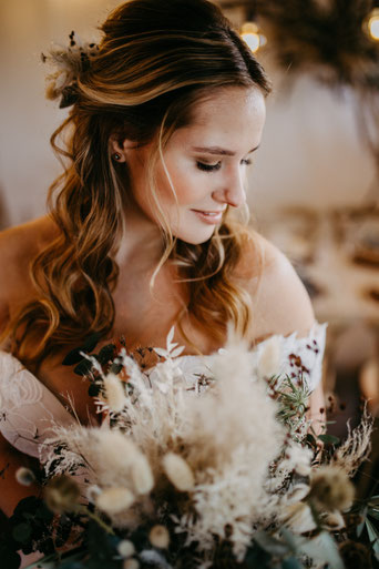 Mein Stil steht für ein natürliches, typgerechtes Braut Make-up, das deine Ausstrahlung betont, kombiniert mit lockeren, verspielten und zeitlosen Brautfrisuren.